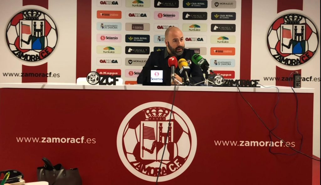 Rueda de prensa de David Movilla, David Álvarez y Ramón González, entrenador del Júpiter Leonés. Resultado final Zamora CF 7–0