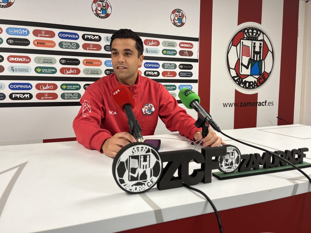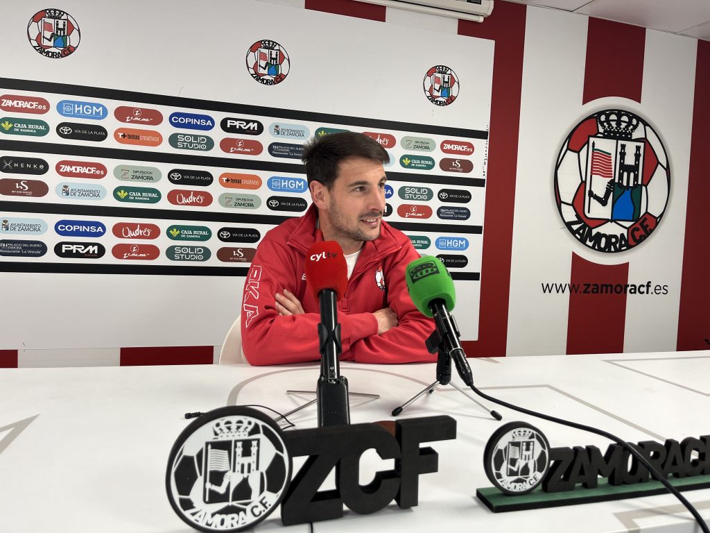 El capitán Dani Hernández y el entrenador del Zamora CF David Movilla atendían a los medios de comunicación en la