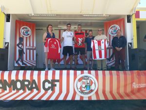En el inicio del triangular, han estado presentes los jugadores del primer equipo rojiblanco Carlos Ramos y Jose Plazas «Pipi» que han efectuado el saque de honor y han entregado al presidente del CD Villalpando, Livino Iglesias una placa conmemorativa de sus 70 años. Así mismo, el club terracampino ha entregado un banderín de su aniversario al capitán Carlos Ramos convirtiendo la jornada en un bonito acto de hermanamiento entre el Zamora CF y la entidad villalpandina. En el acto también ha estado presente el alcalde de la villa, Félix González que ha mostrado su satisfacción por la presencia del Zamora CF en este acto y se ha comprometido en colaborar en todo lo posible con el nuevo proyecto de la entidad rojiblanca. Tras los partidos, se ha entregado los trofeos en el camión rojiblanco que el Zamora CF ha trasladado hasta Villalpando con su acción Kilómetros de Ilusión.
