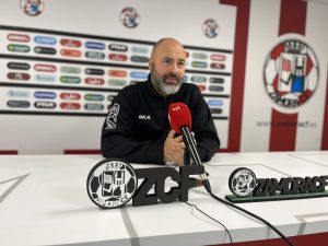 El técnico del Zamora Club de Fútbol, David Movilla, pasaba a finales de la semana por la sala de prensa del Ruta de la Plata para analizar la actualidad del equipo y reflexionar sobre el duelo del domingo ante la SD Compostela. Tras unas palabras de agradecimiento a Markel Goñi, por “honrar su profesión y el escudo del Zamora”, desveló que, en principio, la única baja del Zamora para el choque será la de Jesús Muñoz, que sigue un tratamiento conservador para recuperarse de una lesión en la rodilla: “Si ese tratamiento no funciona, dentro de un mes valoraremos la operación”, comentaba. Tras eso, pasó a desgranar las potencialidades del rival. David Movilla destacó que la SD Compostela “se ha reforzado muy bien”, haciendo referencia al cambio de técnico y a jugadores “de jerarquía en esta categoría y en algunos casos en categorías superiores”. Además, reconoció que con respecto a la primera vuelta, el Compos tiene “más registros, mayor competitividad, más versatilidad ofensiva” y estimó que posee una de las “cuatro o cinco plantillas más fuertes del grupo”, por lo que cree que el duelo lo decidirán los pequeños detalles.El técnico vasco reconoció que no estaba satisfecho con el bagaje ofensivo de su equipo en Guijuelo, pero también quiso dar mérito al conjunto chacinero, asegurando que si no se vio una buena versión del Zamora en ataque también fue por el buen hacer del oponente. De todas formas, no se mostró preocupado por los registros de goles anotados en lo que va de campeonato: “Me preocuparía si no hubiéramos marcado en 16 partidos, porque llevaríamos 16 puntos por empates a cero. Llevamos 39 puntos así que la diferencia es considerable”. En ese sentido, agregaba, recordando: “Llevo aquí cuatro años, hemos hecho récord de goles, de puntos, el récord de mayor goleada, hemos firmado el mejor inicio de liga, récord de más partidos sin encajar. Es muy difícil hacer eso sin jugar bien al fútbol, igual que ahora se me antoja difícil sacar los 39 puntos que llevan.